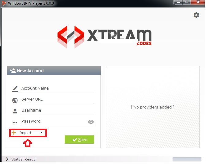 1. Gå till den här sidan och ladda ner programmet till din dator https://windowsiptvplayer.net/Windows_IPTV_Player_3.0.exe 2. Tryck nu på Importera (se bilden nedan)