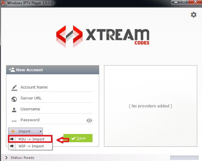 3. Där väljer du valet m3u importmässigt (se bild nedan)